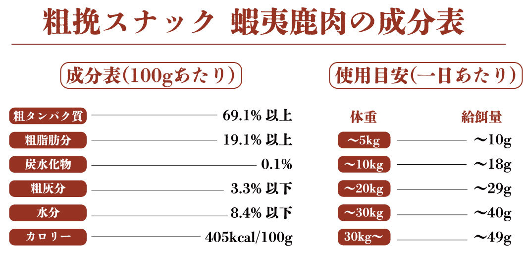 ※給与量は愛犬の年齢、体質、活動量等の必要に応じて調整して下さい。