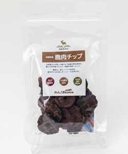 【わん!Buono】鹿肉チップ 50g¥950(税込)高タンパクで低脂肪、鉄分やDHAも含んだヘルシーなお肉直径は3~4センチぐらいで手で割りやすく、また小さなワンちゃんでも食べやすい硬さです