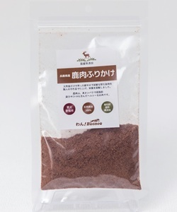 【わん!Buono】鹿肉ふりかけ 50g¥920(税込)高タンパクで低脂肪、鉄分やDHAも含んだヘルシーなお肉ワンちゃんの食欲がない時や、手作り食のトッピングなど、使い方は様々です