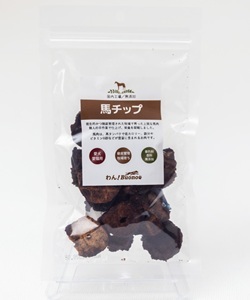 【わん!Buono】馬チップ 50g¥840(税込)高タンパクで低カロリー、鉄分やビタミンB群などが豊富に含まれるお肉直径は3~4センチぐらいで手で割りやすく、食べやすい硬さです