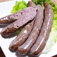 亜鉛が豊富でヘルシーな馬肉をベースにビタミンAやβカロチンを多く含むかぼちゃと食物繊維を多く含むゴボウ、ビタミンUを含んでいる青のりを入れた無添加の手作りソーセージです。