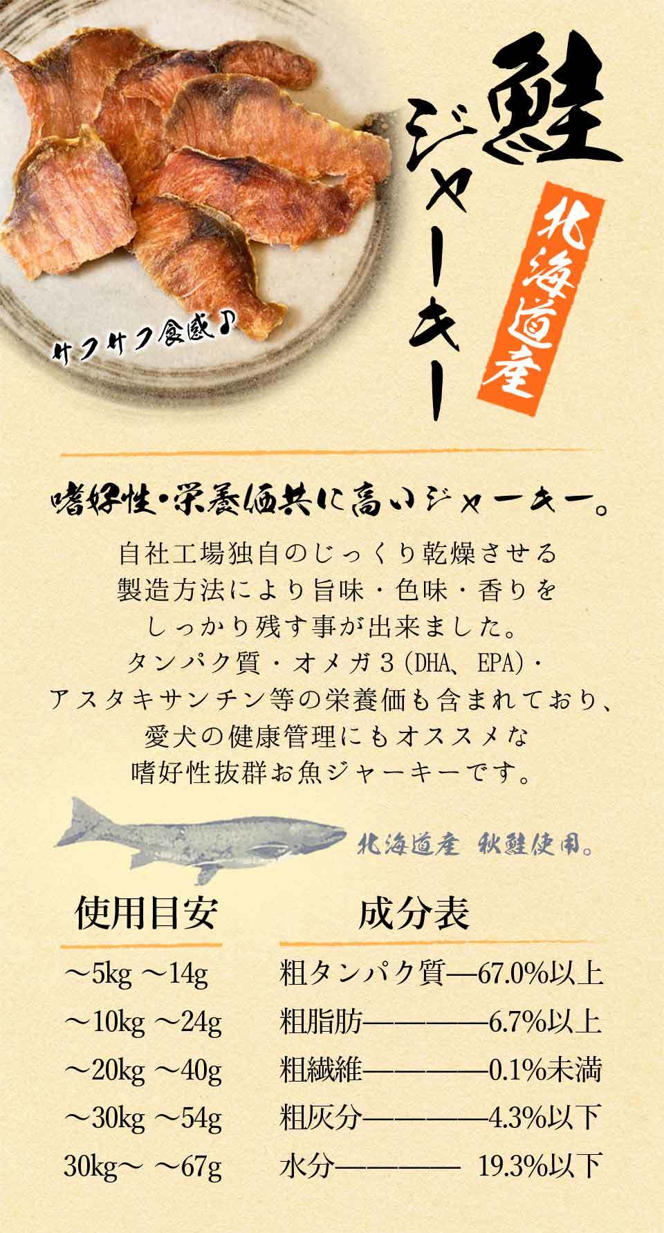 北海道で捕れた鮭の切り身を乾燥させたものです(塩分無添加)