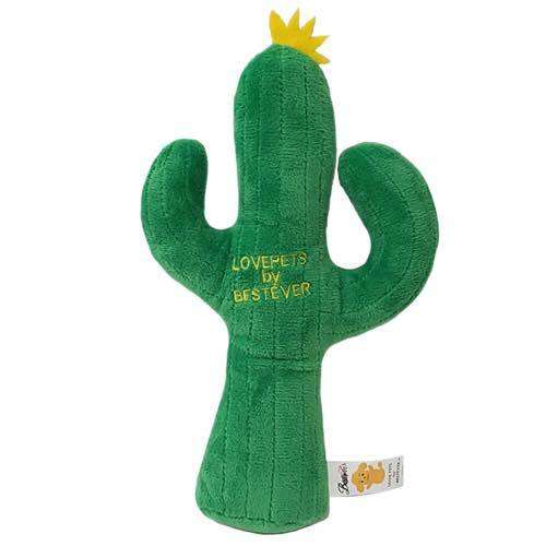 まるで人の様な形がかわいいサボテンのぬいぐるみは、ペットが咥えている姿もかわいい。