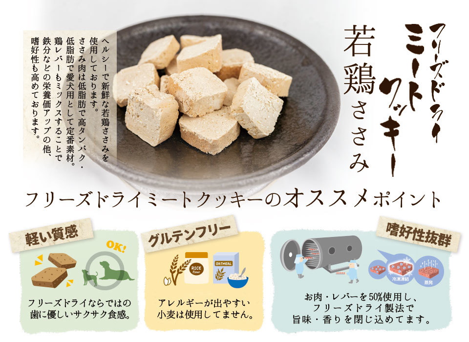 サクッと軽い質感に仕上げたノングルテンのフリーズドライクッキーです。