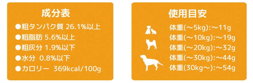 ※給与量は愛犬の年齢、体質、活動量等の必要に応じて調整して下さい。