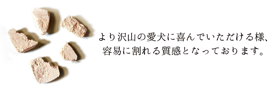 お肉(レバー含む)を50%使用し、生地の素材にもこだわりました。