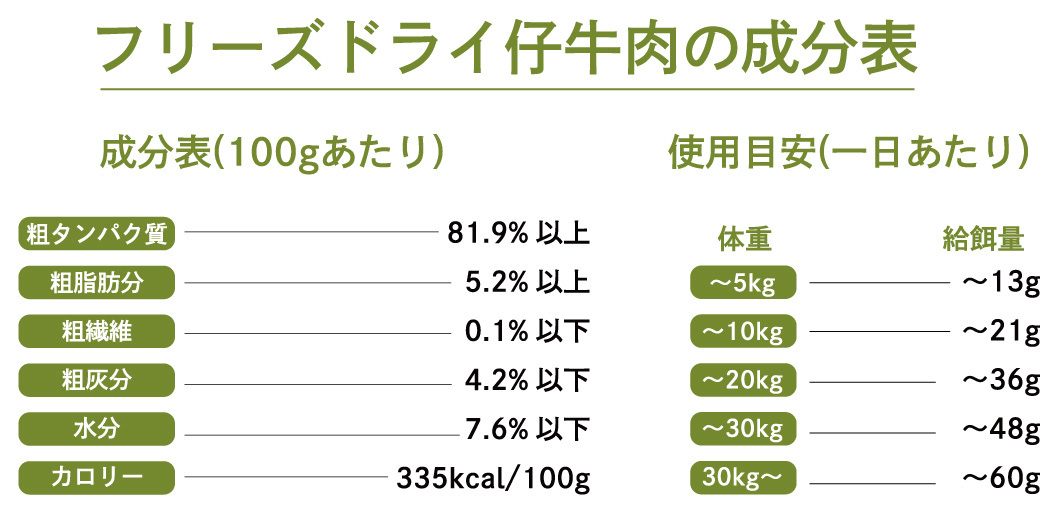 ※給与量は愛犬の年齢、体質、活動量等の必要に応じて調整して下さい。