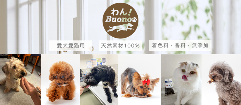 【わん!Buono】豚耳スライス 40g¥590(税込)豚耳は、コラーゲン、カルシウム、ビタミンEなどが豊富に含まれています。噛み応えと嗜好性のある、ワンちゃんが大好きなおやつ!